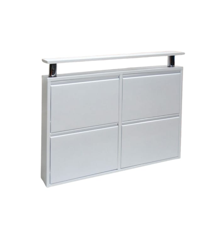 Dekorasyonda ve kullanımda beyaz renkten vazgeçemeyen her ev sahibi, ayakkabı düzeni için de 2+2 beyaz yatay metal ayakkabılık ürününden yararlanabilir. Çünkü bu ürünümüz 15 cm derinliği ile birlikte 98 cm genişlik ve 81 cm yükseklik gibi bir ölçü sunmaktadır. Bu boyutu ile özel ve ergonomik bir kullanım sağlayan geniş metal ayakkabılık evlerde iç veya dış alanda her zaman dayanıklı olarak kullanılabilmektedir.