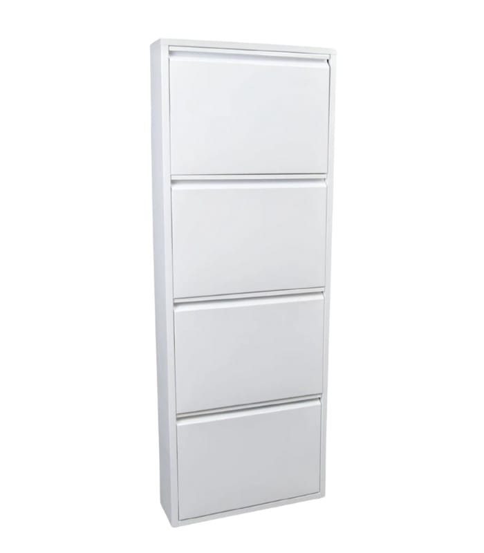 Metal ayakkabılık 4 lü ürünümüz; 137 cm yükseklik, 50 cm genişlik ve 15 cm derinlik ile her ev için ideal ölçülere sahiptir. Evlerinizde kapının dışında veya içinde kullanabileceğiniz bu beyaz renk ayakkabılık, dekoratif anlamda da her zaman temiz bir görüntü ile seçilebilir. Merkezi açılımlı yapısı ile mıknatıslı kapakları dağınıklık oluşturmadan en kullanışlı çelik ayakkabılık olarak tercih edilebilir.